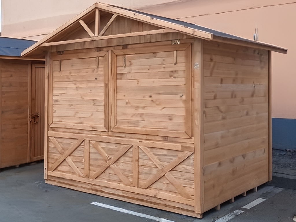 Domek jest całkowicie rozbieralny, wielokrotnego użytku, można go złożyć i swobodnie zainstalować w innym miejscu. Bardzo łatwy w transporcie i magazynowaniu. Lada składana do środka, nie przeszkadza w transporcie. Duże 2 okna otwierane na zewnątrz ułatwiają ekspozycję towaru i jego sprzedaż. Dach pokryty w standardzie papą. Domek w sprzedaży bez podłogi, istnieje możliwość zamówienia podłogi oraz innych akcesoriów za dodatkową opłatą.