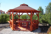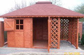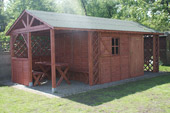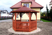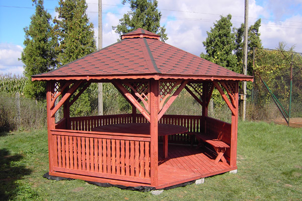 Prosimy pamiętać, że kolor wyświetlony na monitorze komputera może nieco zmieniać rzeczywisty odcień gontu. Gont zastosowany na pokrycie naszych altan i domków jest oryginalnym, fabrycznym produktem, a producent daje na niego 20 lat gwarancji.